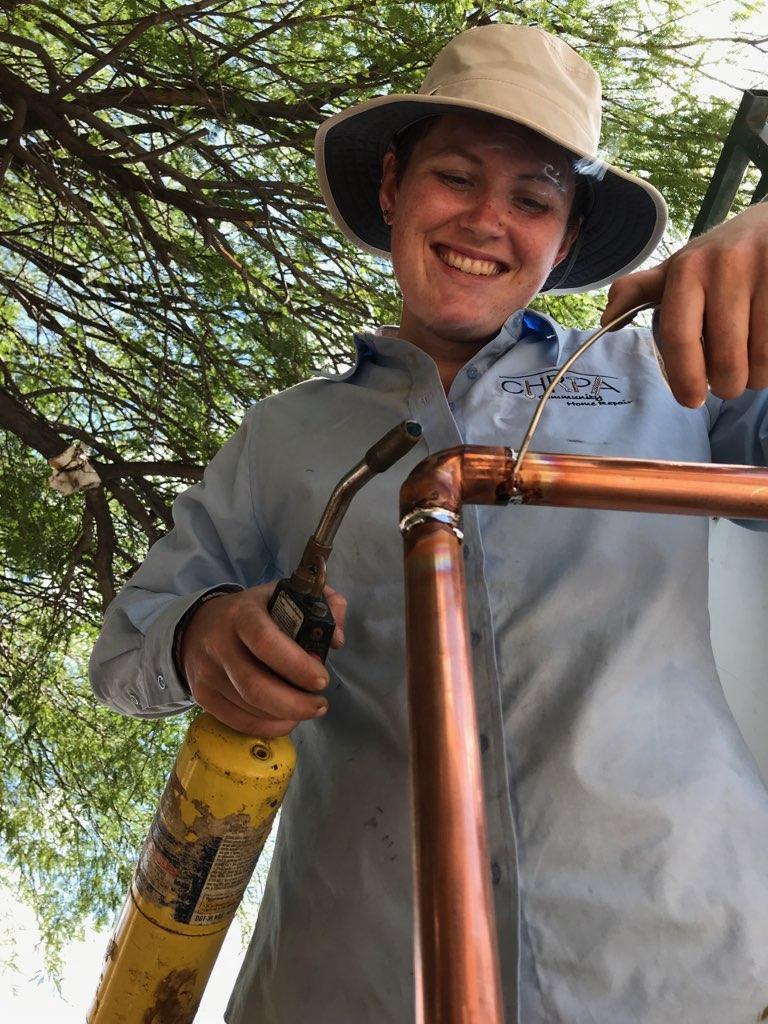 Work at CHRPA looks different every day! Here I am soldering pipes to run a new water line to a clients house, which stopped a water leak.